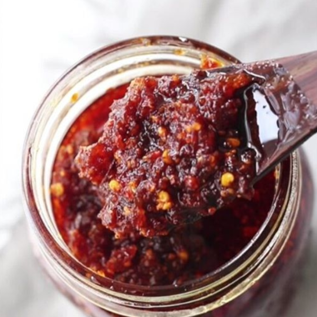 A bold, savory oil infused with chili, garlic, and real shrimp, delivering rich umami flavor with a spicy kick—perfect for elevating any dish.